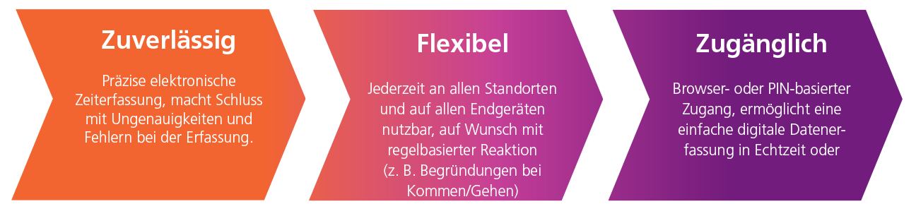 Folgende Module decken dabei alle Anforderungen der Arbeitszeiterfassung ab: