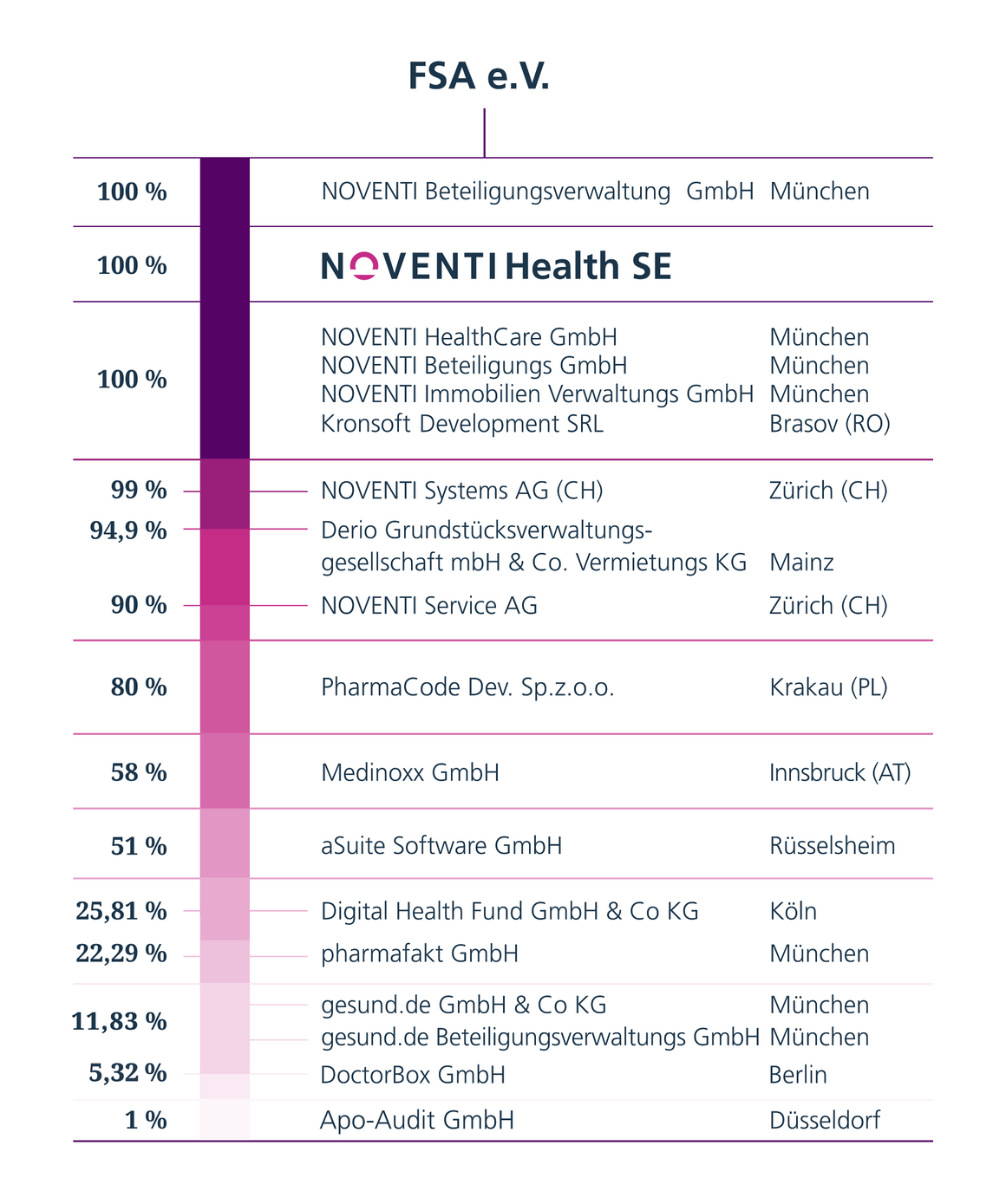 Mit ihren hochspezialisierten Einzelgesellschaften und dem FSA e. V. als alleiniger Gesellschafter ist die NOVENTI Group ein in dieser Form einzigartiger Player im deutschen Gesundheitsmarkt.